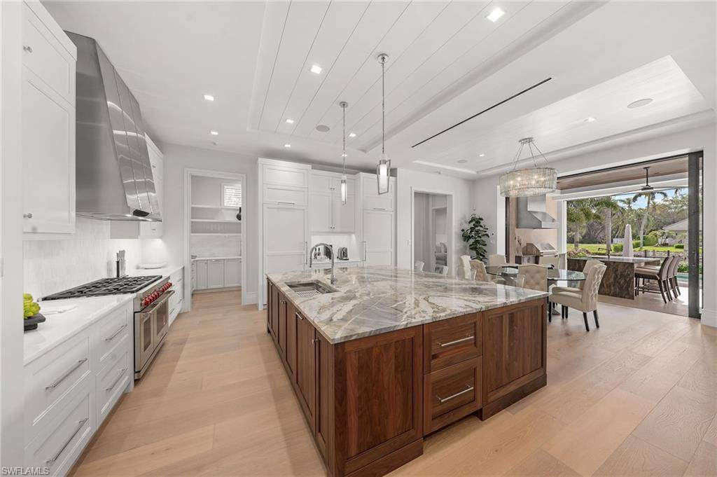 Key enhancements are underway to improve this already remarkable property!! Just beyond its stately front gates lies one of the most exciting New Construction opportunities on the market today. With 140 feet of water frontage this magnificent home built by A. Vernon Allen Builder can accommodate a large boat and provides no bridge access to the Gulf. Delivering a coastal-inspired aesthetic this home features a show-stopping 80-FOOT POOL AND SPA COMPLEX with a 3-sided infinity spill-over edge, linear fire features, sun shelf, Brazilian hardwood decking and an embedded firepit. Sliding glass doors fully pocket away for a seamless transition from the expansive outdoor area to a spacious interior which includes: 2 sumptuous primary suites (one upstairs and one downstairs), 4 guest suites, whole-home generator, thoughtfully placed wood accents, an elevator, built-in wine nook, Lutron lighting system with Control 4 automation, a steam shower and an extended lanai with an outdoor pool bath. This impressive property exudes quality and is enveloped by lush, tropical landscaping. With a cul-de-sac location providing extra privacy you'll feel as though you've entered your own secluded resort; a world unto itself.